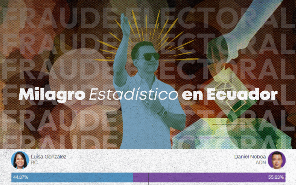 Este domingo el mundo asistió a un milagro sin precedentes en la historia política mundial. La segunda vuelta de la elección presidencial que se dirimía entre el “candidato-presidente” -así llamado porque Daniel Noboa, millonario y prepotente violó la norma que impide a un presidente ecuatoriano seguir en funciones si se postula para la reelección- y Luisa González arrojó un resultado asombroso: la candidata de Revolución Ciudadana obtuvo el 44.35 % de los votos, una cifra casi idéntica a la que obtuviera en la primera vuelta: 44.0 por ciento. Noboa, por su parte, se alzó con 55.65 % de los votos cuando en la primera vuelta había terminado con 44.17 % y fue re-electo como presidente.